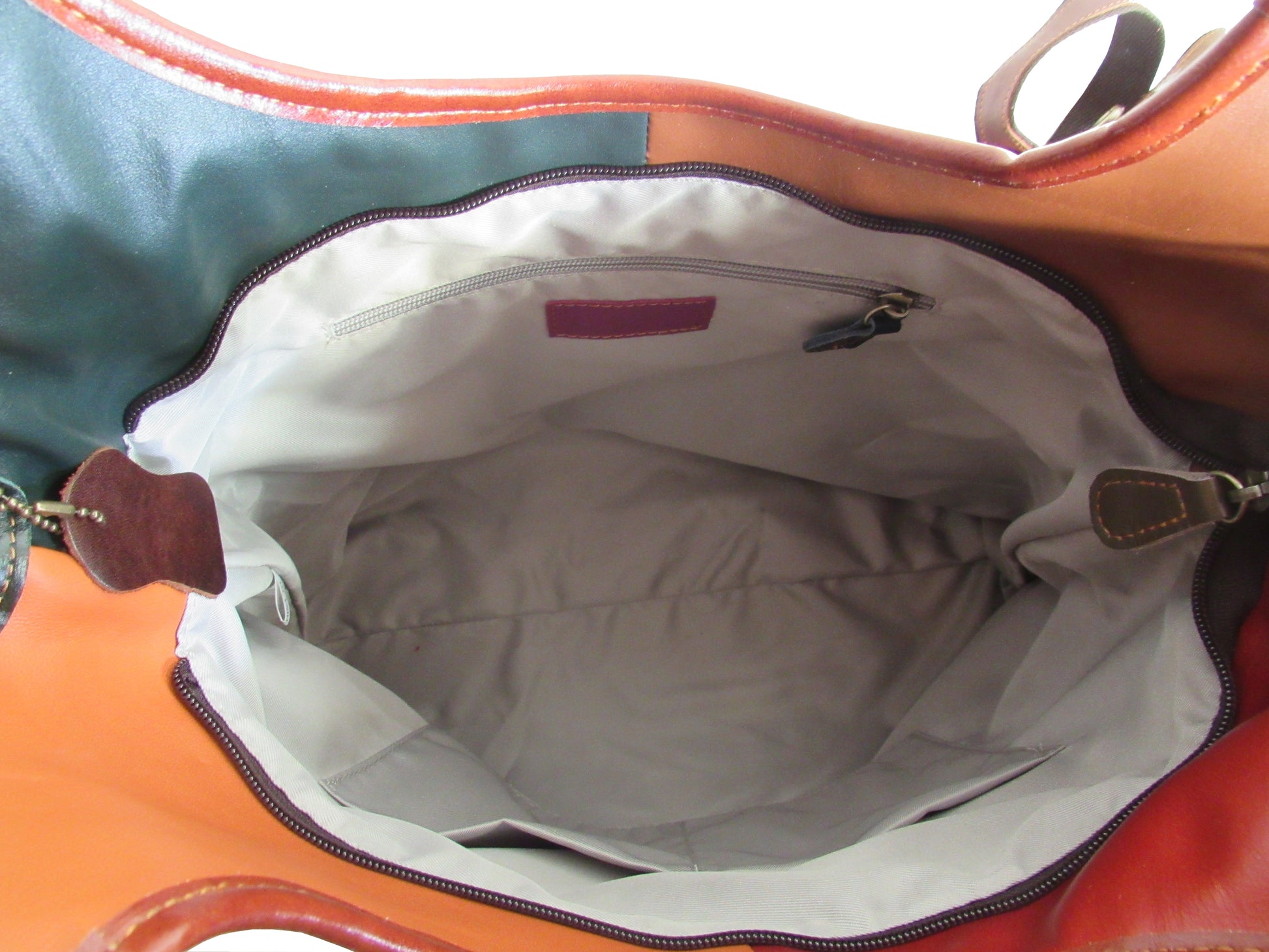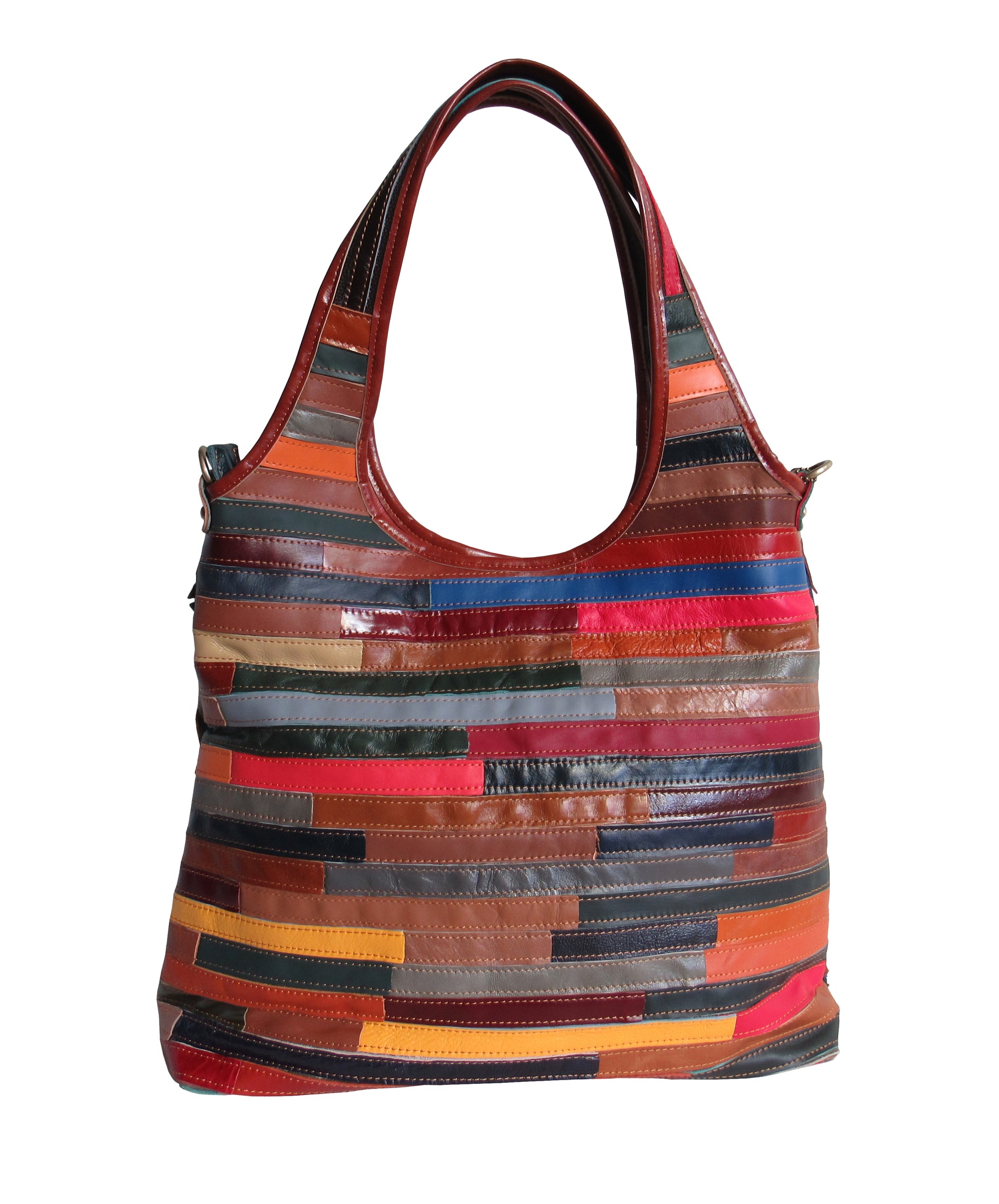 The vivid patchwork and prismatic colors are complementing and beautiful. It will be the brilliant and unique tote bag in your collection.