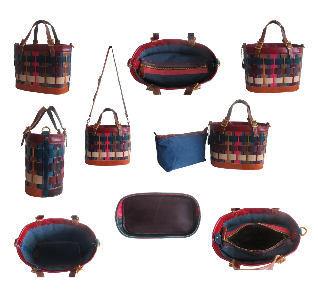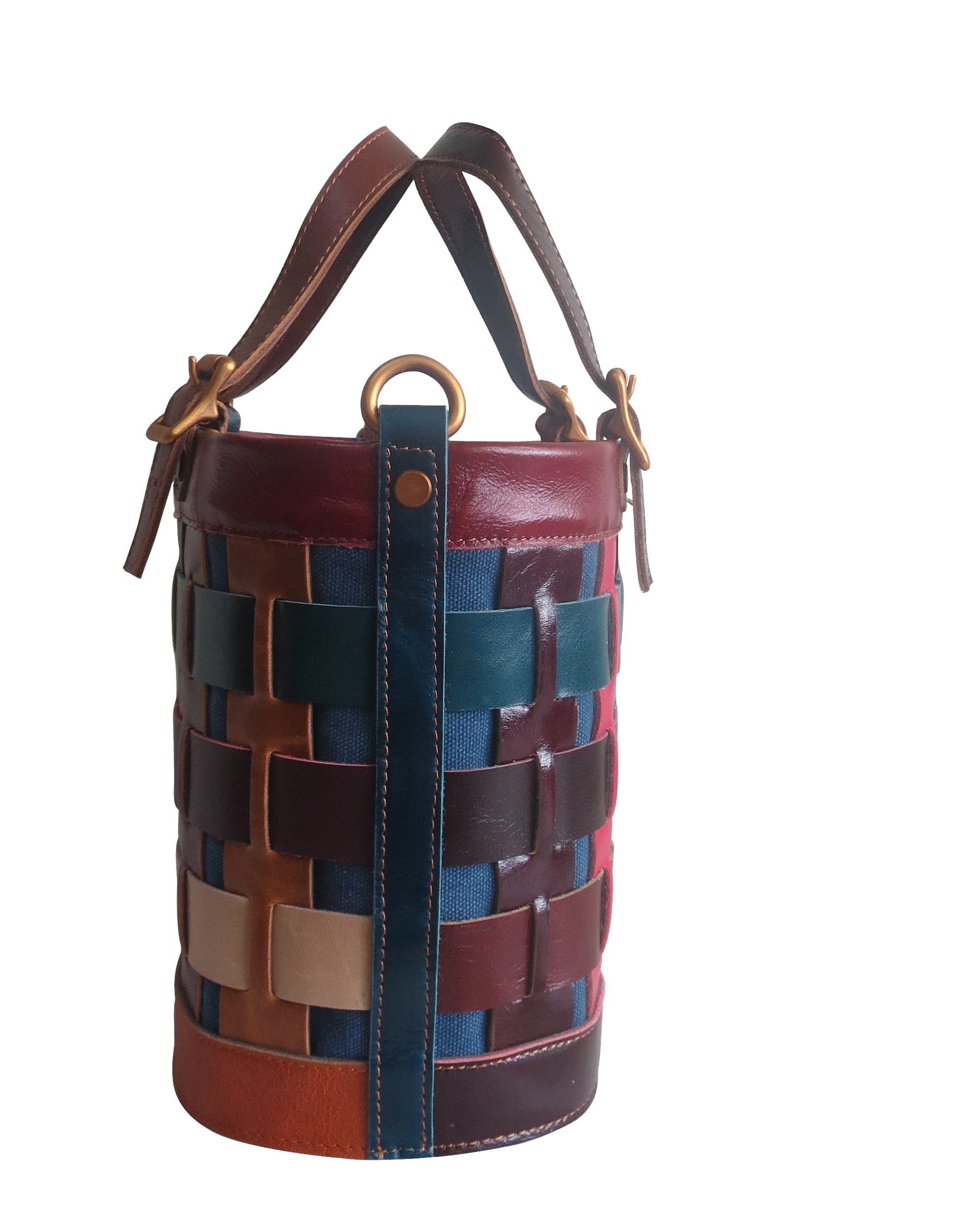 - Entire bag is constructed with multi-color leather belts